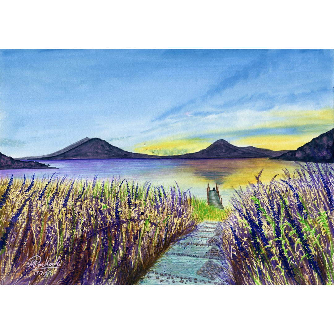 In "Lavender Dream by the Lake," I wanted to capture the calm of a sunset, where golden light meets the soft purples of a lavender field. The wooden pier leads to a figure sitting in quiet reflection, surrounded by still water and framed by distant mountains. The scene invites peace and contemplation, offering a moment of serenity in nature's beauty. I hope that you, too, feel the calm of this dreamy moment.